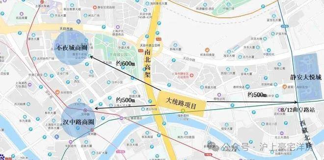 商业配套:周边500米左右有静安大悦城、万象天地、汉中路商圈,约600米可至不夜城商圈。另距离人民广场商圈约1公里,距离南京路步行街约1.8公里。