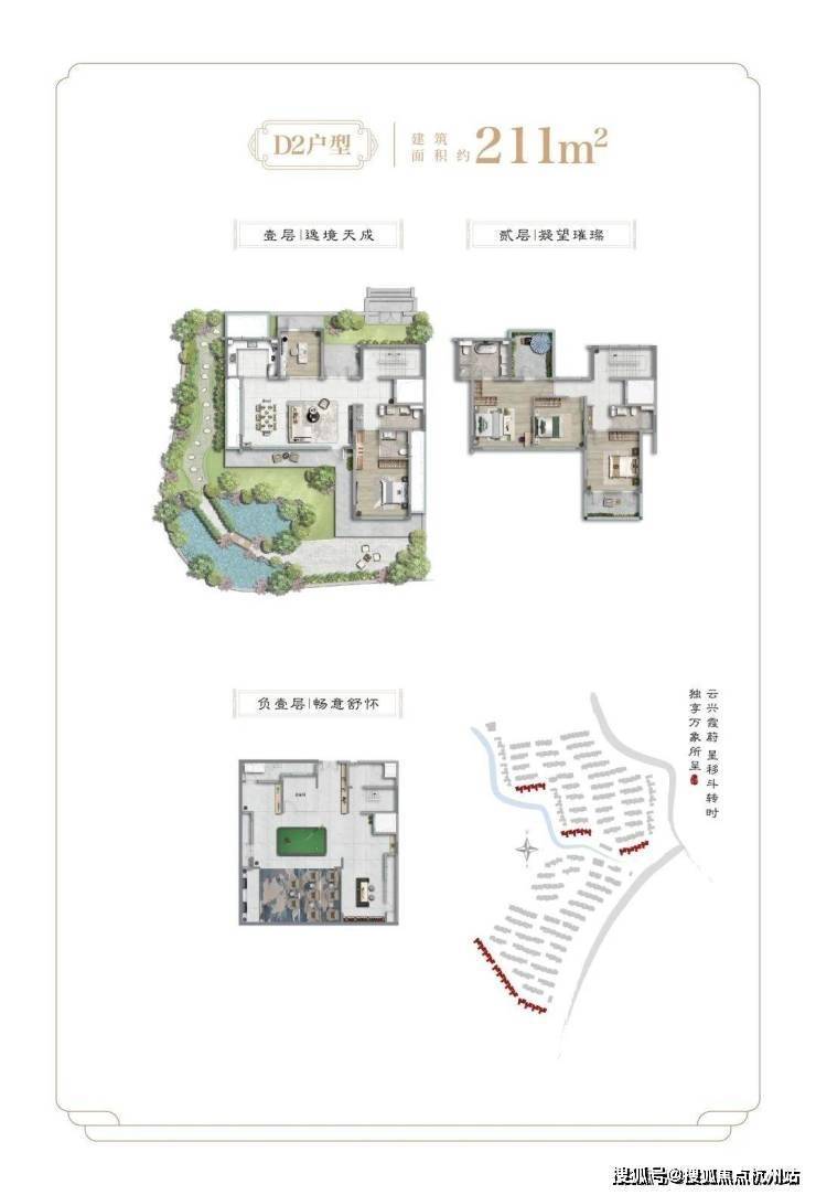 项目二期为纯别墅产品,社区容积率约0.41,面积段约为138-455㎡之间不等,不仅延续了一期多重景观结构,出市入室的仪式感满满,更是提升为围合式院落结构,增加了转角街巷之间的景观点,细节之处尽显大宅风范和业主的雍容气度。除常规的有天有地之外,还配有超高层高地下室及露台。