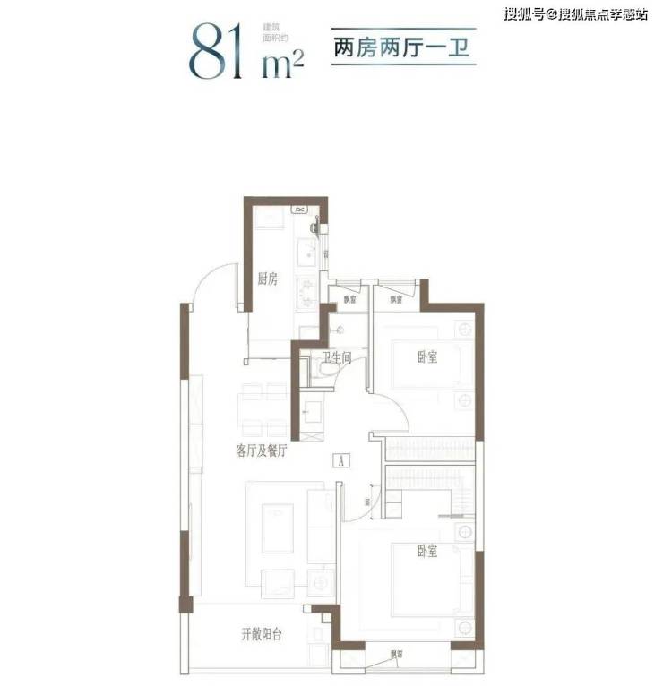 户型特点:小面积,低总价;2房朝南大面宽,舒适生活感受;卧室飘窗设计,释放更多公共空间。