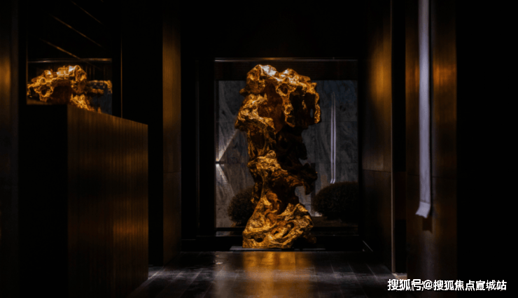 露香园天誉售楼处电话:400-8855-420一进入露香园·天誉城市展厅,即能看见一座高达2.25m的艺术雕塑,呼应着堂前“露香池”园林叠石假山的奇趣。整个造型取法太湖石,并巧妙地将“东风”二字隐于其间,意寓着“顺风顺水”的东方生活理想。在接待台上也放置一盏玉石台灯,造型取自山南筑“露香阁”的亭台楼阁之一,结合当代精妙手法,在重现明代名园露香园的故园锦时之际,更勾勒出极具人文气质的前场空间。