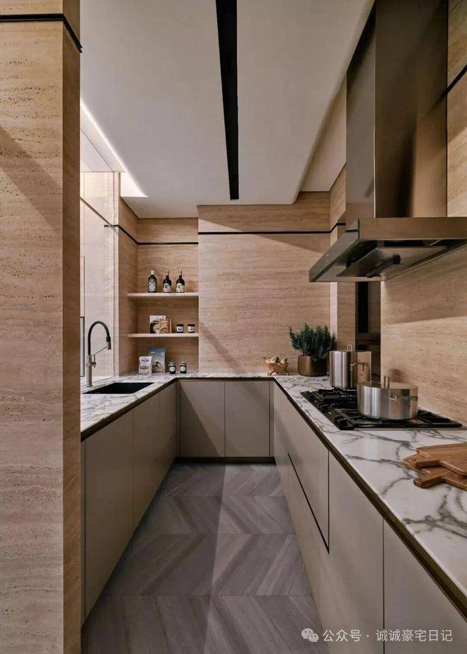 空间中没有冗余的符号,每一个细节都经过精心考量,既满足当代生活需求,又延续了海派文化的精神内核。嘉格纳蒸汽烤箱、真空抽屉组合隐于柜体秩序,与同侧咖啡机呼应。暖木色泽与大理石细腻纹路交织,勾勒出厨间的宁静气韵。