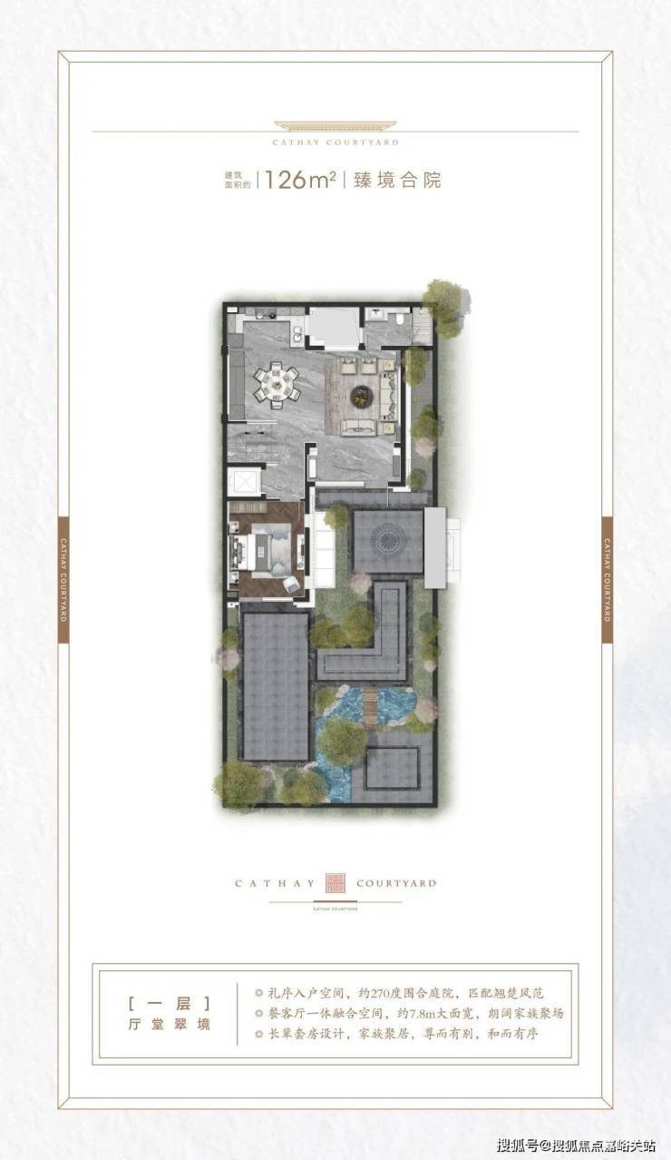 建面约126㎡的合院户型,同样适合三代同堂,或者三口之家以及高净值年轻夫妻等家庭。