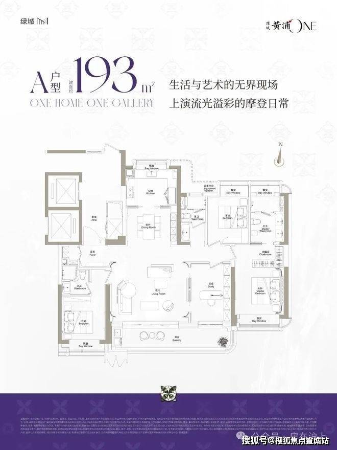 绿城·黄浦ONE规划了一幢住宅,两个户型依次排开,规整有序,边套是约193㎡4房2厅3卫,中间套是约155㎡3房2厅2卫户型,是纯粹改善大户型社区。