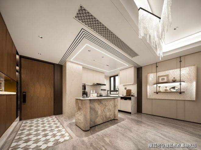 走进海上·清和玺的厨房, 墙面岩板通铺 ,视觉效果超棒。