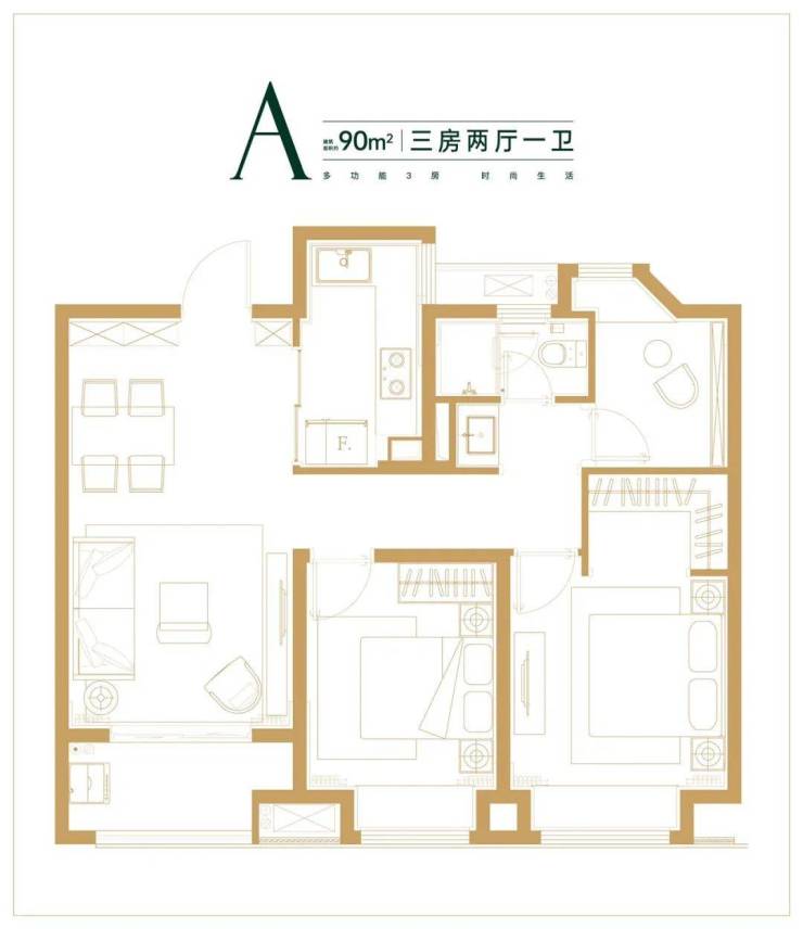 约90㎡3房2厅1卫样板间照: