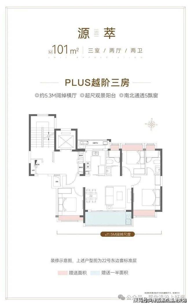 101㎡PLUS越阶三房:约5.3M阔尺横厅/约11.5M南向面宽,