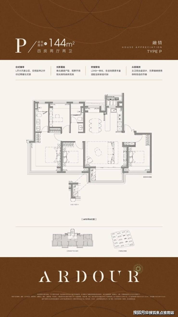 再来看下建面约144㎡4房,部分装标是有所升级的。
