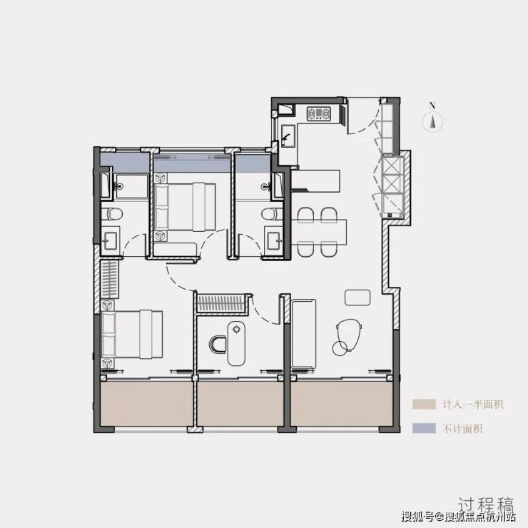 阳台+飘窗算下来,约108㎡户型的实得率达到了惊人的约87%,实得面积约94㎡!