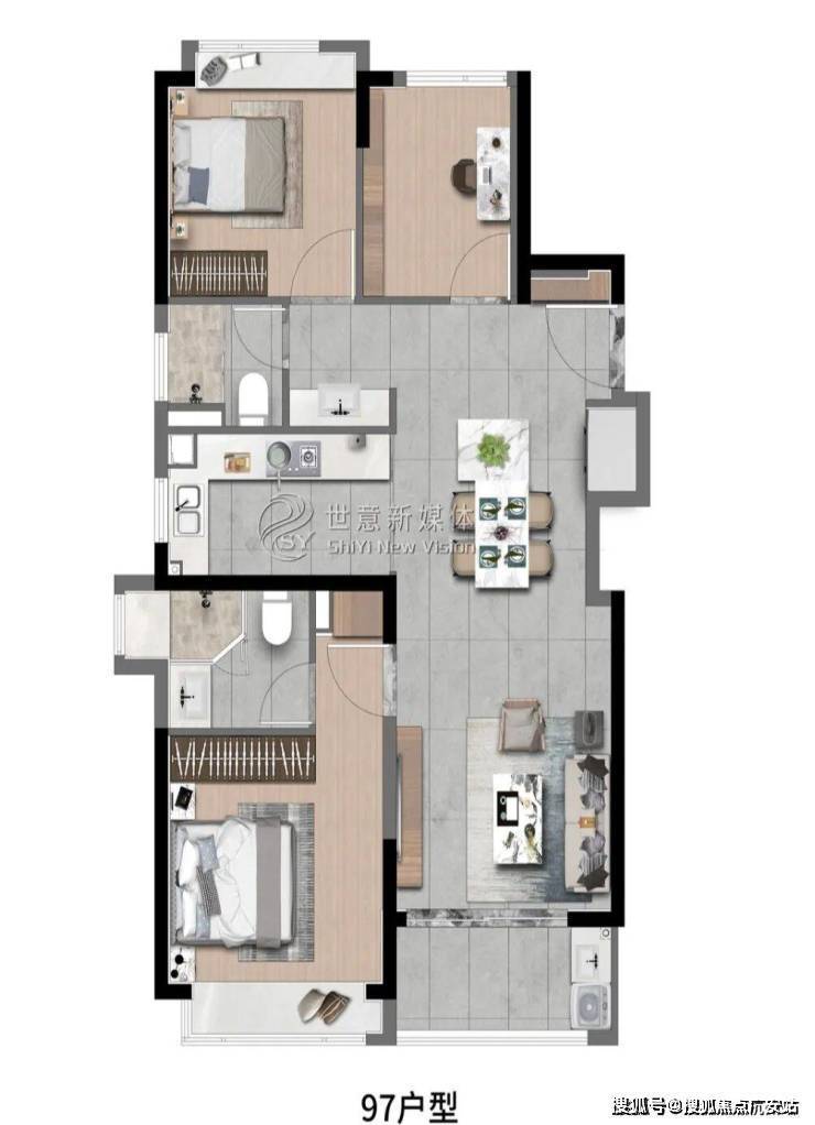 象屿深入考量空间与场景的运用,将生活中看得见与看不见的细节进行了细致打磨。玄关、阳台、厨房、卫浴均设置科学收纳空间,营造高品质生活体验的同时,更带给居者层建面约83㎡3房2厅1卫