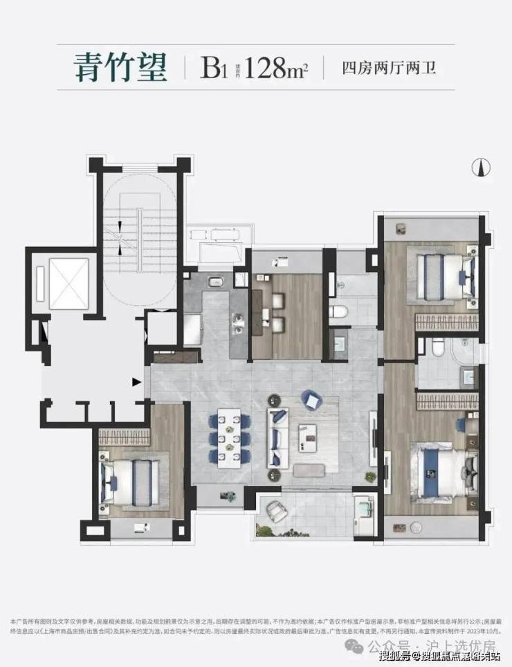 约128㎡4房2卫户型是约99㎡的升级版,四房更能保障业主的全生命周期需求。