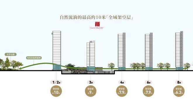 这个标准比不少甲级写字楼还高,几乎跟国金中心、柏悦酒店那种顶级商用空间看齐了,这样的架空层高度,天然的让建筑悬浮在植被之上,每户都是景观最C位。