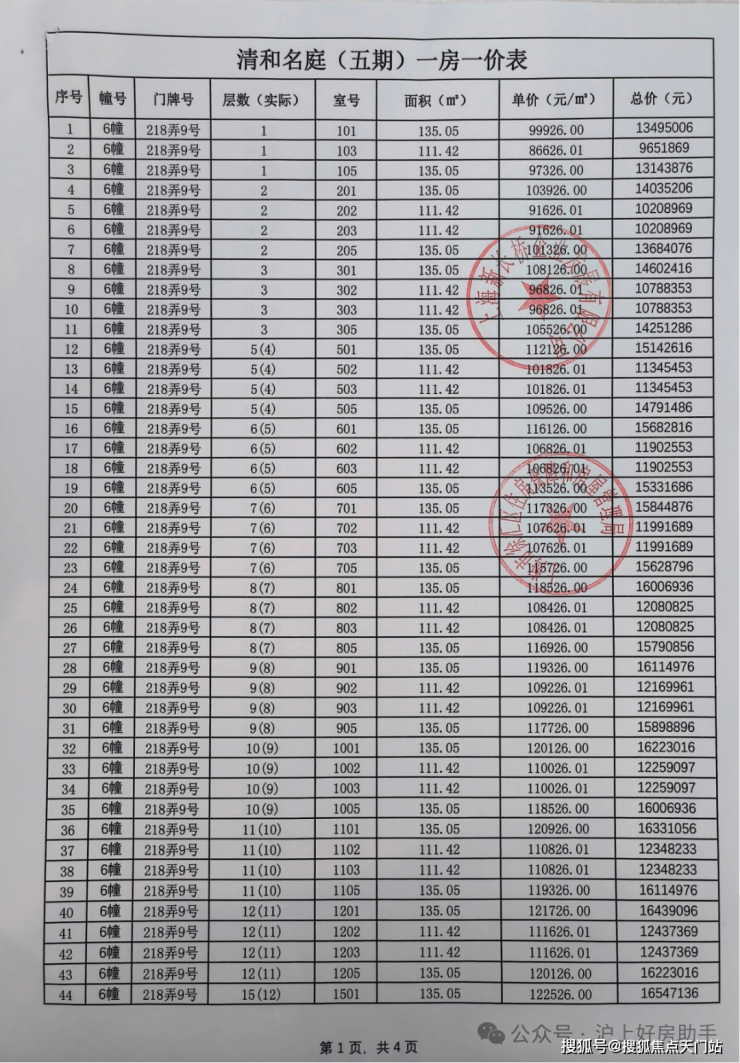 海上清和玺一房一价表▼