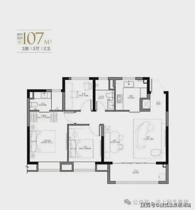 「星尚·观澜世嘉」共计4种户型,103㎡、107㎡的三房两厅两卫及123㎡、129㎡的四房两厅两卫,共计550套可售住宅。
