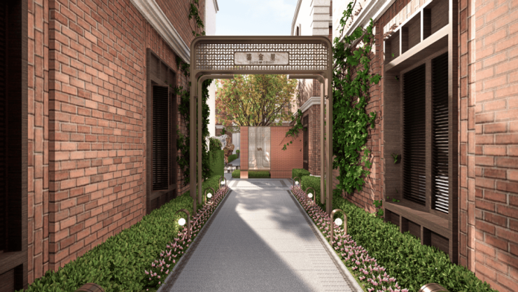 景观布局上,以老上海生活场景为根本来演绎空间,形成“三轴两门三院三花园的”空间布局,构建出两个礼序归家轴和一个海派生活轴。