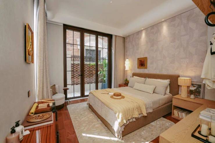 同样大面宽落地玻璃南向长辈套房,以零台阶平层动线呵护长者起居,晨光入室、推窗见园,让孝心落地于每一寸空间细节。