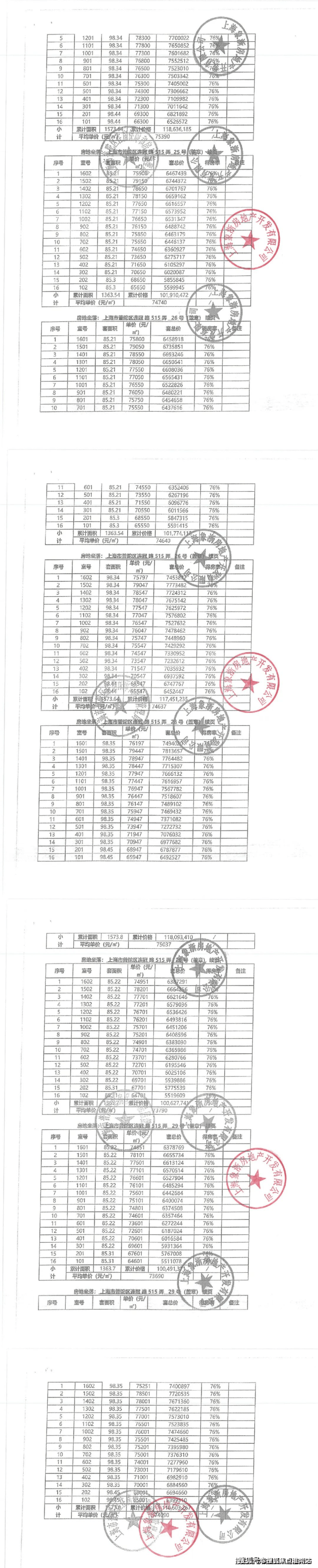 最新一房一价表:
