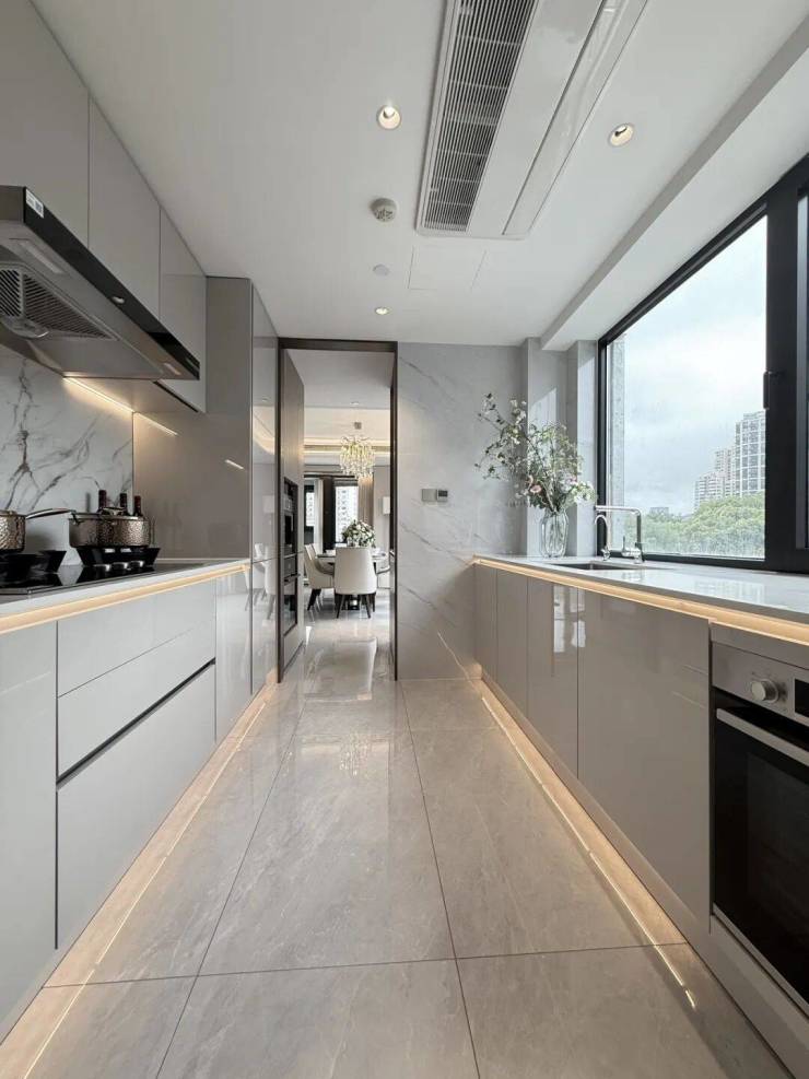 住宅产品覆盖93平方米中小户型至300-500平方米大平层,满足多样化需求。超高层户型得房率72%—75%,层高3.3—3.5米。以277平方米主力户型为例,采用中西厨分离、双洄游动线设计,增强空间流动性与家庭成员互动。顶层更设有少量400-600平方米环幕景观大平层,以极致尺度定义天际生活。