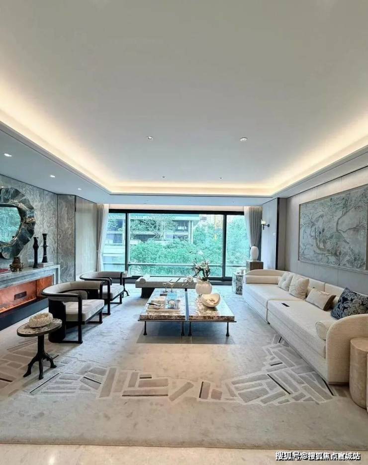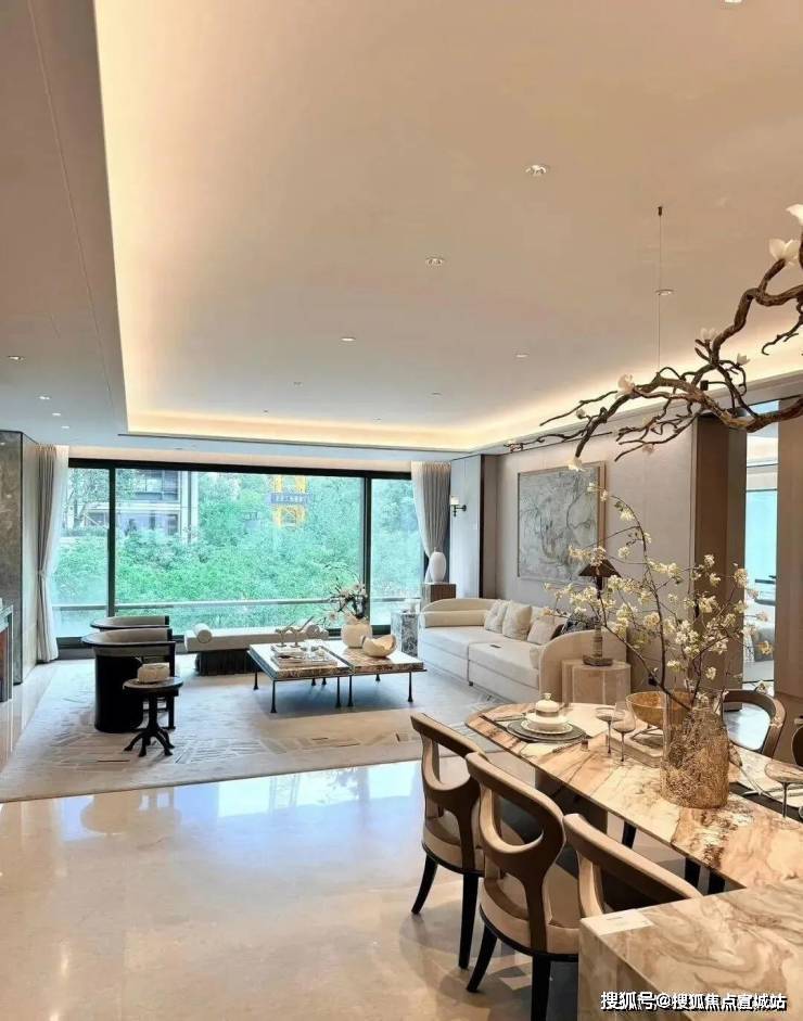 同时也得益于两个地块融合在一起形成了完整地块,项目打造了约160米超长中轴,约4000㎡中轴景观,约700㎡落玉水院、下沉庭院以及私属入户花园。