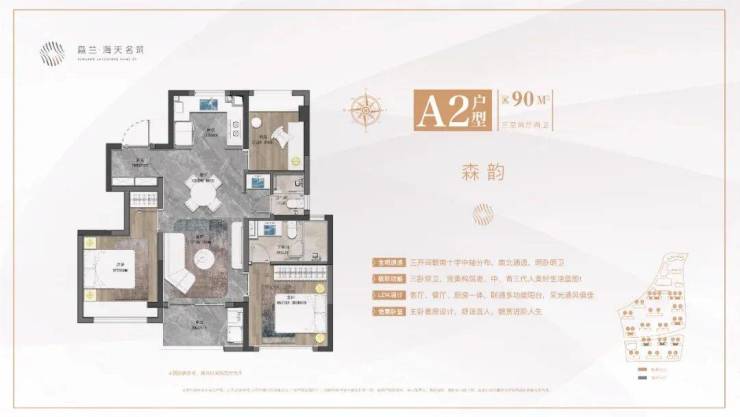 约90㎡三室两厅两卫▼「森兰海天名筑」售楼处电话:400-8855-420【☎️售楼处认证】✨✨✨