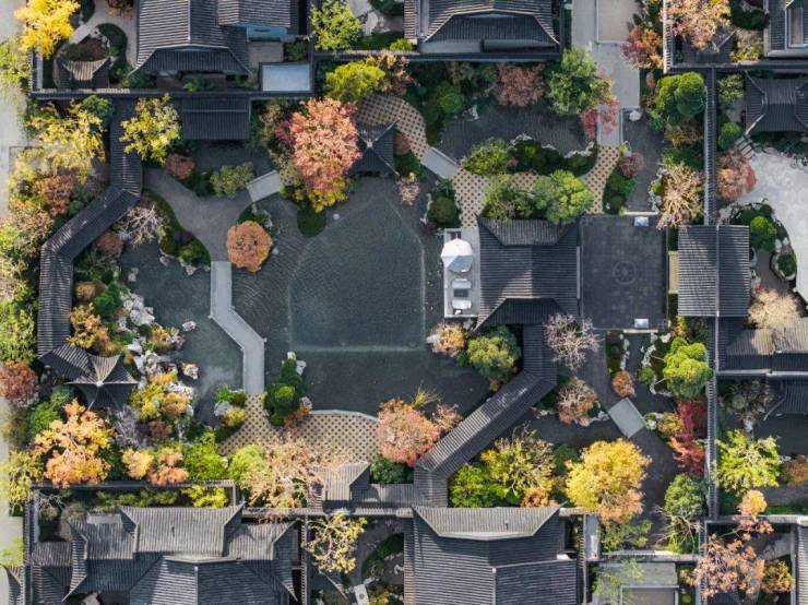 容积率仅0.41–0.45,绿化率35%–60%,上海主城区罕见的纯低密中式合院群落