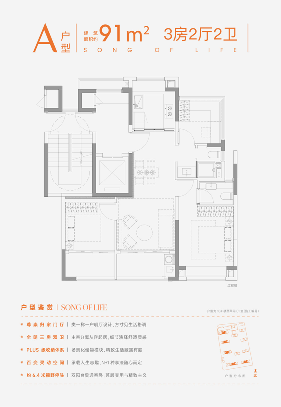 当竞争对手在面积上做加法时,我们选择在过道上做减法,高得房飞机户型,几乎无过道浪费,约 91㎡三房两卫配置,区域同面积段唯一双卫配置,功能与性价比之王。