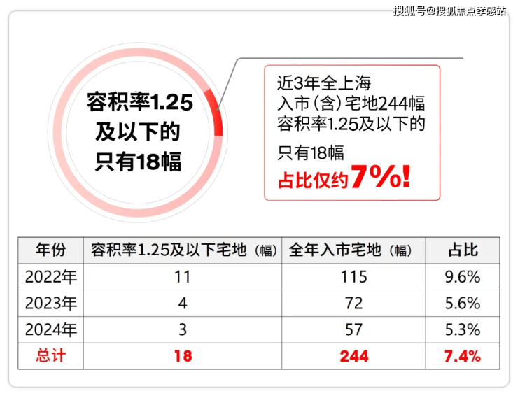 据统计,在2022年容积率1.25以下的宅地还有11块入市,2023年锐减至4块、2024年则只有3块,3年合计18块占比总市场仅约7%,稀缺属性爆表。