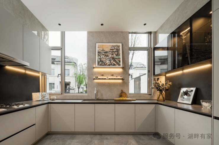 厨房配备国际一线厨电,U型操作台动线合理,适配日常烹饪与高端宴请。