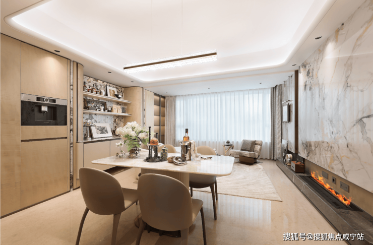 【约102㎡样板间】三房两厅两卫格局,同样的布局设计巧思应用于102㎡,打造出近乎双套房的生活体验。5米面宽横厅设计,营造极致通透感,臻选奢石融入空间,优雅时尚。厨房科学动线设计,搭配国际品牌五金和厨电,悦享精致烹饪时刻。星级主卧,独立卫浴,将空间最大程度延伸,打造舒居体验。