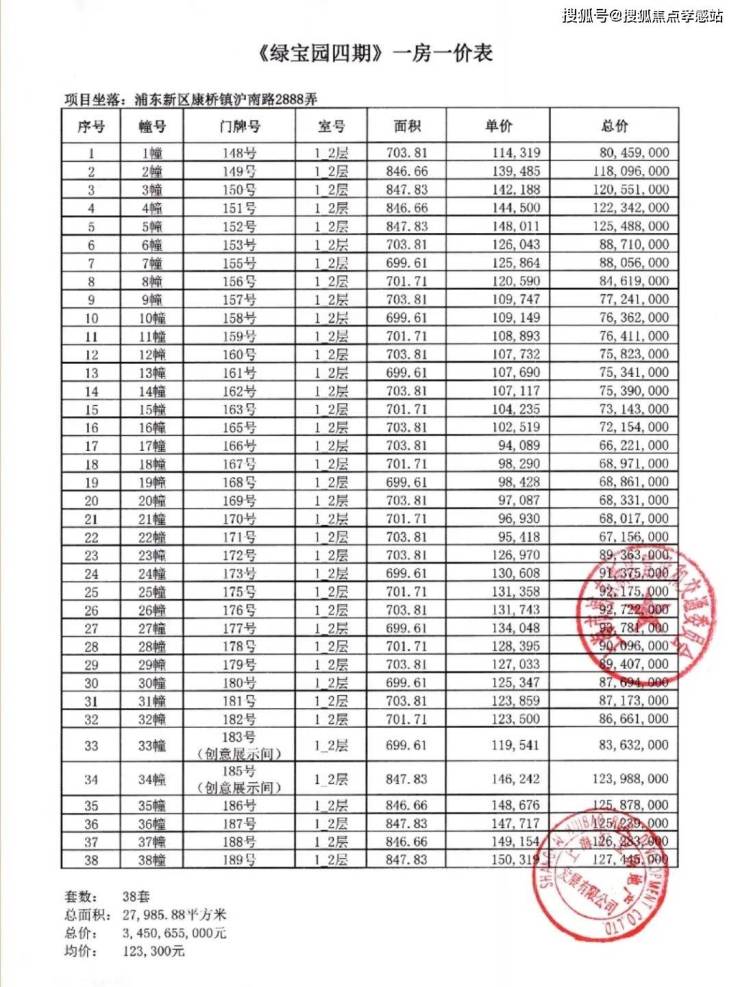 一房一价表: