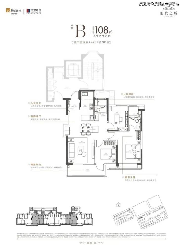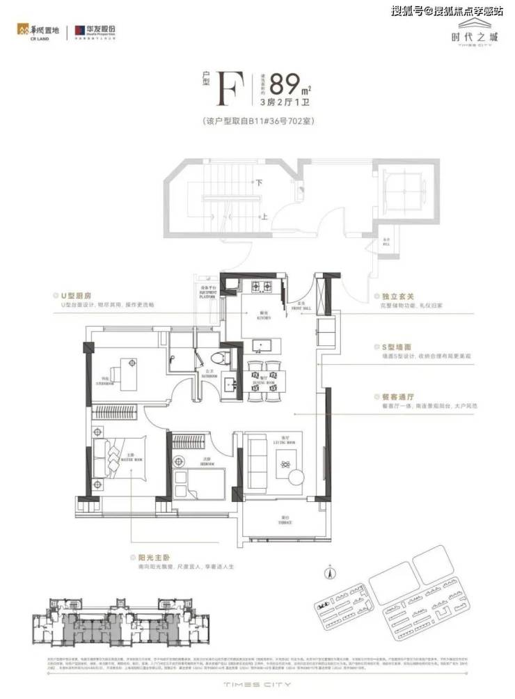时代之城·云墅售楼处电话:400-8787-740☎建筑面积约89㎡3室2厅1卫,客餐厅一体,南连景观阳台,诠释时代人物的居住风范。