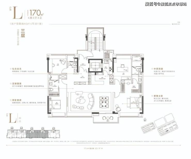 时代之城·云墅售楼处电话:400-8787-740☎建筑面积约133㎡四房两厅二卫,该户型四开间朝南四房配置,有两点很独特:其一,空间可以根据家庭成员变化来调整,当家里人口少,客厅可以变换成大横厅;当家里人口多,靠客厅的房间可以变成卧室或书房。其二,主卧拥有270°转角飘窗和观景视野,这一般是豪宅项目中250㎡以上户型才有的配置。不仅是豪宅项目的配置下沉,更是整个南翔至今更具逼格的主卧。