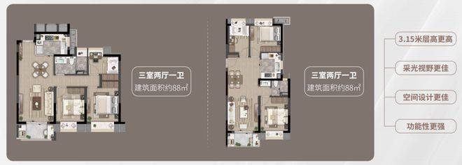 项目目前在售建面约72-88㎡2-3房,总价门槛较低。