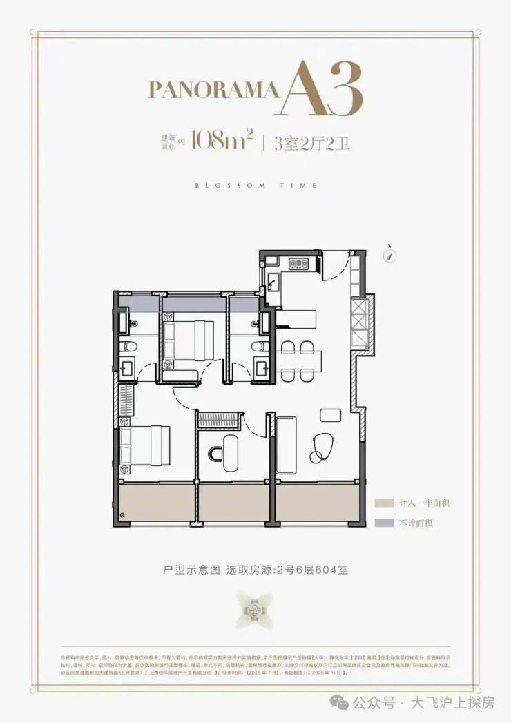 纵观当下市场,三阳台户型普遍采用 “南向双阳台+北向阳台” 的传统布局。大华·静安年华这款108㎡户型,三个阳台齐刷刷朝南,在新房市场独一份。