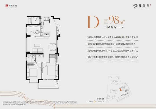 户型设计兼顾实用与舒适,98-268㎡的全明户型覆盖刚需至改善需求。98㎡三房做到三开间朝南,南北通透,客厅连接宽景阳台,采光通风俱佳,主卧套房设计,配备独立卫浴与衣帽间,保障私密性;140㎡四房采用动静分离布局,L型厨房操作动线合理,客餐厅一体化设计,空间开阔,适合多孩家庭;268㎡顶奢户型为终极改善之选,大面宽、短进深,搭配全景落地窗,视野开阔,双套房设计,满足大家庭的居住需求。所有户型均为精装交付,选用知名品牌建材,细节处彰显品质。中建虹悦里售楼处电话:400-8787-740
