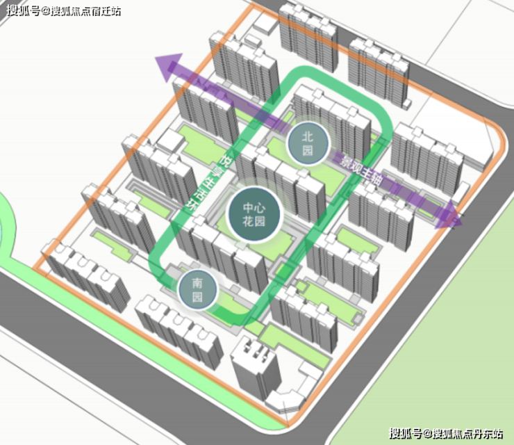 项目精心规划“一环一轴三园”,于建筑中另辟一方天地,以绿意包裹整个小区,打造绿氧环绕的公园住区.