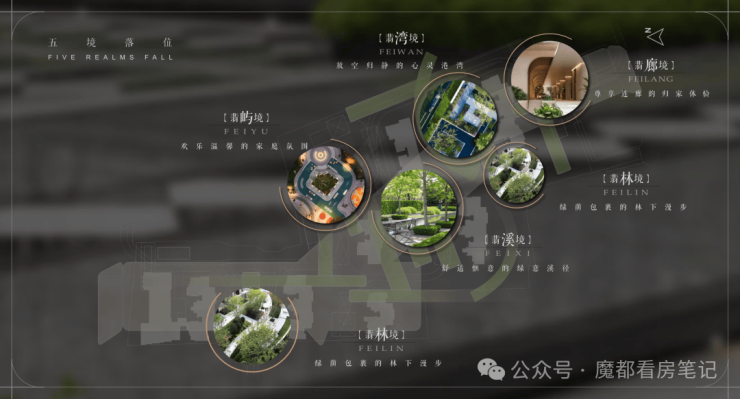 项目园林规划“翡色五境”五大空间氛围,匠造融入时光、人文海派、自然与艺术、家庭与邻里的“四轴、三园、五区、一吧”四大功能空间,设计“春赏花、夏赏绿、秋赏叶、冬赏姿”四季有景的长效花园,让您拥抱诗意雅致的生活。