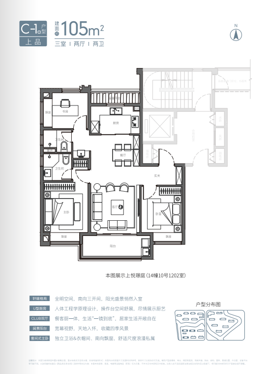 建面约105㎡3房竖厅户型也很不错! 入门玄关设计+三开间朝南+餐客厅一体化 ,动线流畅,更赋予居所通透大气的空间感和层次感。