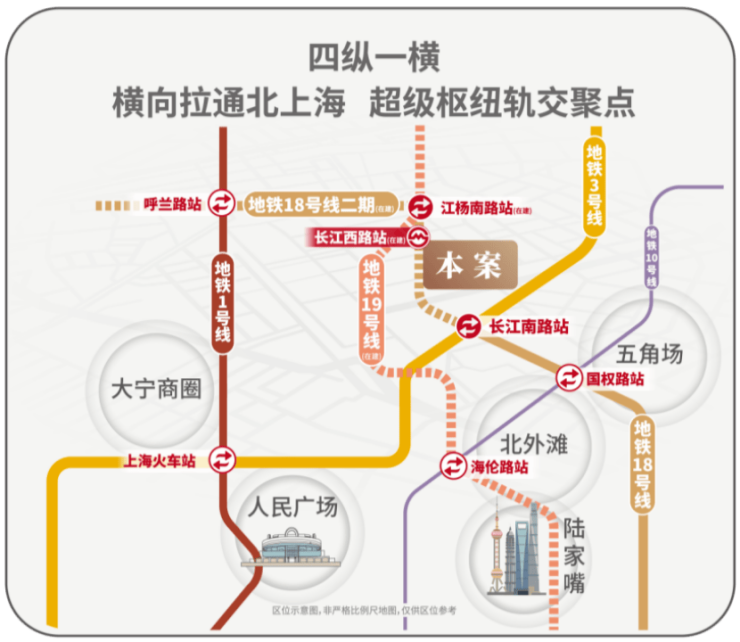 一路之隔的18号线长江西路站预计年底通车!在建的地铁18号线二期横向拉通了原本纵向不相连的四线地铁(1/3/18/19),淞南因此将成为区域轨交的聚点,地铁密度堪比内环,项目直接距离长江西路地铁站仅约150米,1站江杨南路,5站复旦,7站五角场,让您快速抵达城市的各个核心区域。