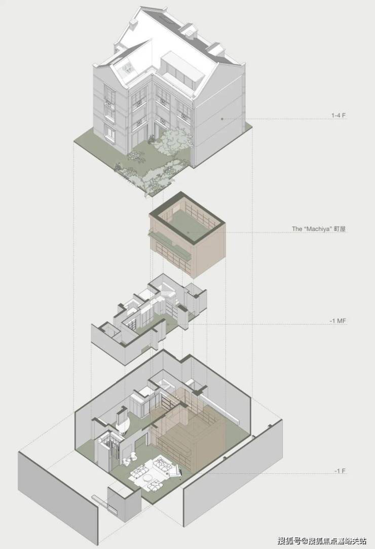 尽管有明确的结构分区和限制,我们还是将地下室视为一个整体空间。我们的方法是在空间中植入一个'町屋'(日本传统商住建筑)。
