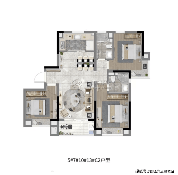 C2户型约110㎡户型图▼