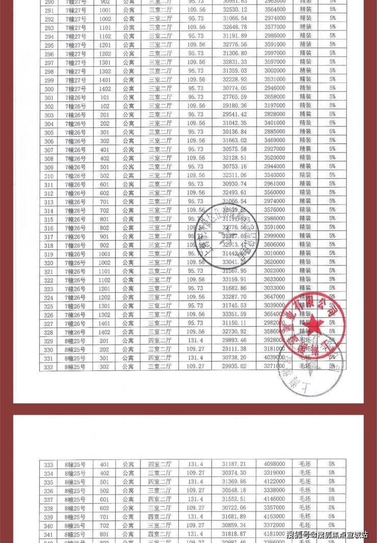 项目一房一价表