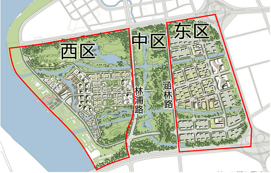整个三林滨江,共分为东、中、西三大片区,而东区与西区,就是主要的功能住区。