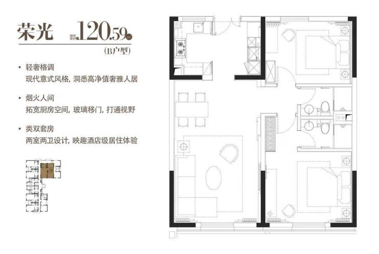 B|荣光|建面约120.59㎡户型图如下:
