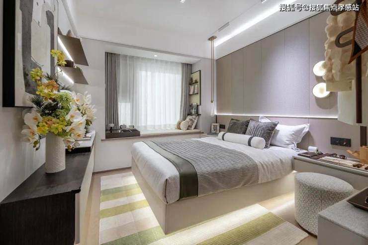 主卧套房,「华发·虹桥四季」售楼处24小时电话:400-8855-420✌✌✔✔飘窗大采光面,结合飘窗台实现办公、阅读休憩多种生活场景。