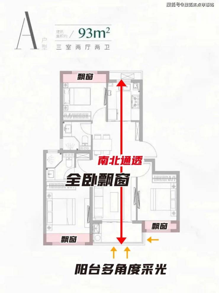 具体而言,建面约93㎡3房: