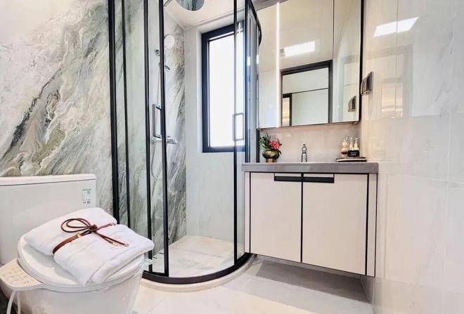 两间卧室朝南,均带有飘窗,主卧自带独立卫浴,小户型也可以拥有酒店套房般的体验。北向房间设计双飘窗,这也就意味着拥有双向景观,给了生活更多一种的可能。