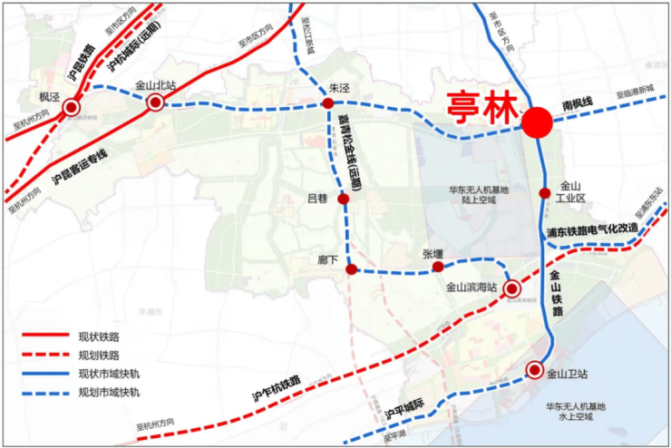 原因就是金山铁路,我们常说的“金山小火车”,已经成熟运营。从亭林站出发,4站可到达上海南站。无缝换乘1/3/15/号线。而且亭林站直线距离新华·星耀东方仅约2.5公里,让一切皆有可能。