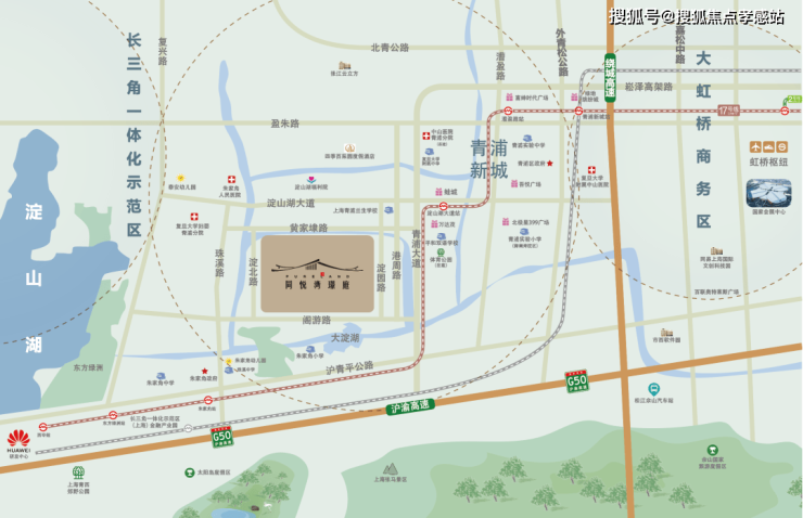 项目与17号线淀山湖大道站直线距离约2.5公里,通过17号线可直达虹桥商务区,并且能无缝换乘2/10号线,快速接驳上海市中心。