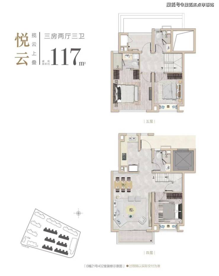产品方面,项目以现代中式风格为基底,凝萃平坡结合手法,融入顶部挑檐及坡顶设计,全心呈现建面约117-129㎡ 中式叠墅、建面约 85-95㎡ 逸境洋房洞见大匠修为。