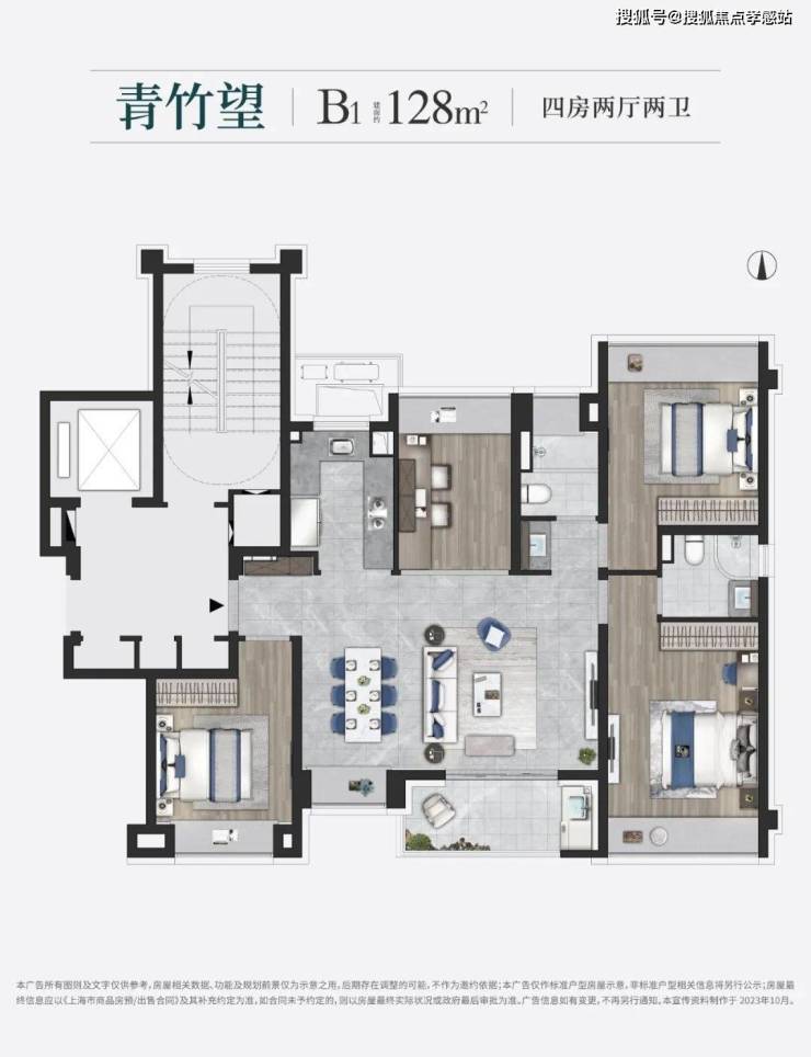 约128㎡4房2卫户型是约99㎡的升级版,四房更能保障业主的全生命周期需求。